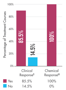 Patients experienced a clinical response†† in 85.5% (141/165) of treatment courses (open-label trials).1